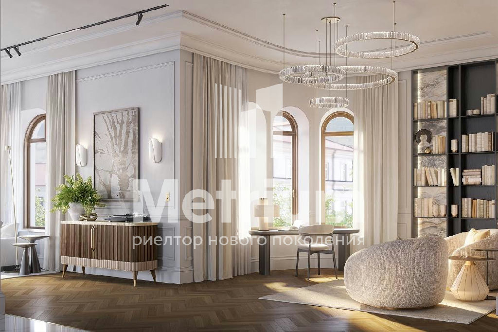 ID 25159 Роскошный пентхаус общей площадью 392,2 кв. м. расположен на 6-м этаже. Арочные окна, элегантный сферический эркер и высокие 4-метровые потолки создают уникальное пространство, наполненное светом. Продуманная и изысканная планировка, в которой разделены общие и приватные зоны позволит всем членам семьи совмещать свои сценарии жизни. Окна пентхауса выходят на все стороны света, дровяной камин в гостиной наполнит зимние вечера теплом и уютом, подчеркнет престиж и статус семьи. Потрескивание дров создает спокойную и романтичную атмосферу в доме. Расположенная на крыше личная терраса площадью 185 кв. м. с неповторимыми видами делает пентхаус идеальным местом для комфортной и по-настоящему роскошной жизни.